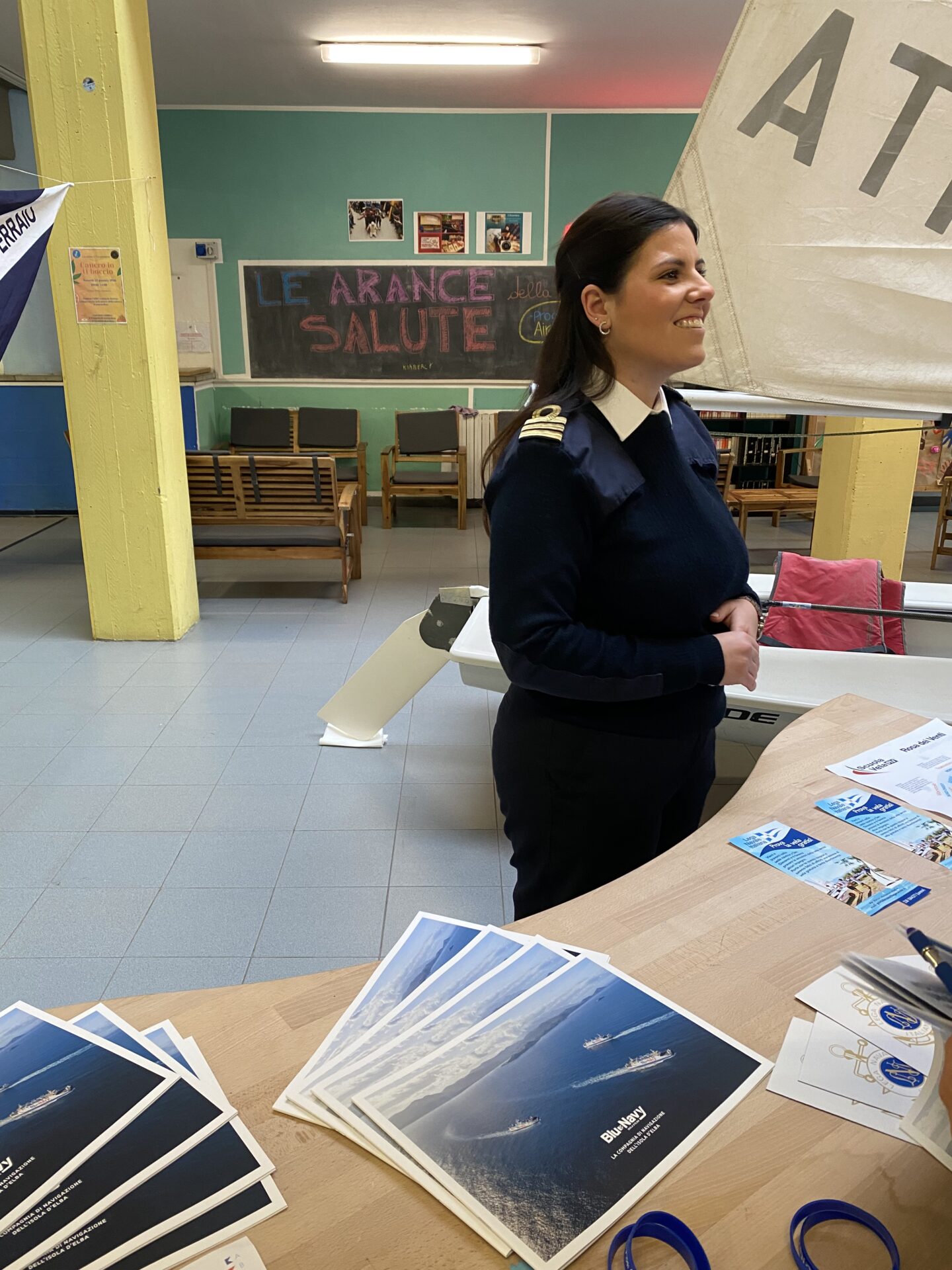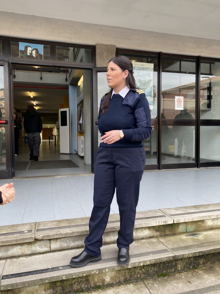 Rachele Monni, Erste Offizierin bei Blu Navy, berichtete von ihrem beruflichen Werdegang: von den Ausbildungsentscheidungen über die gemeisterten Herausforderungen bis hin zu den Verantwortungen ihrer Rolle und den Chancen, die der maritime Sektor auch den neuen Generationen bieten kann. Ein authentischer Dialog mit der Schulwelt – für all jene, die beginnen, über ihren Weg nach dem Abschluss nachzudenken.