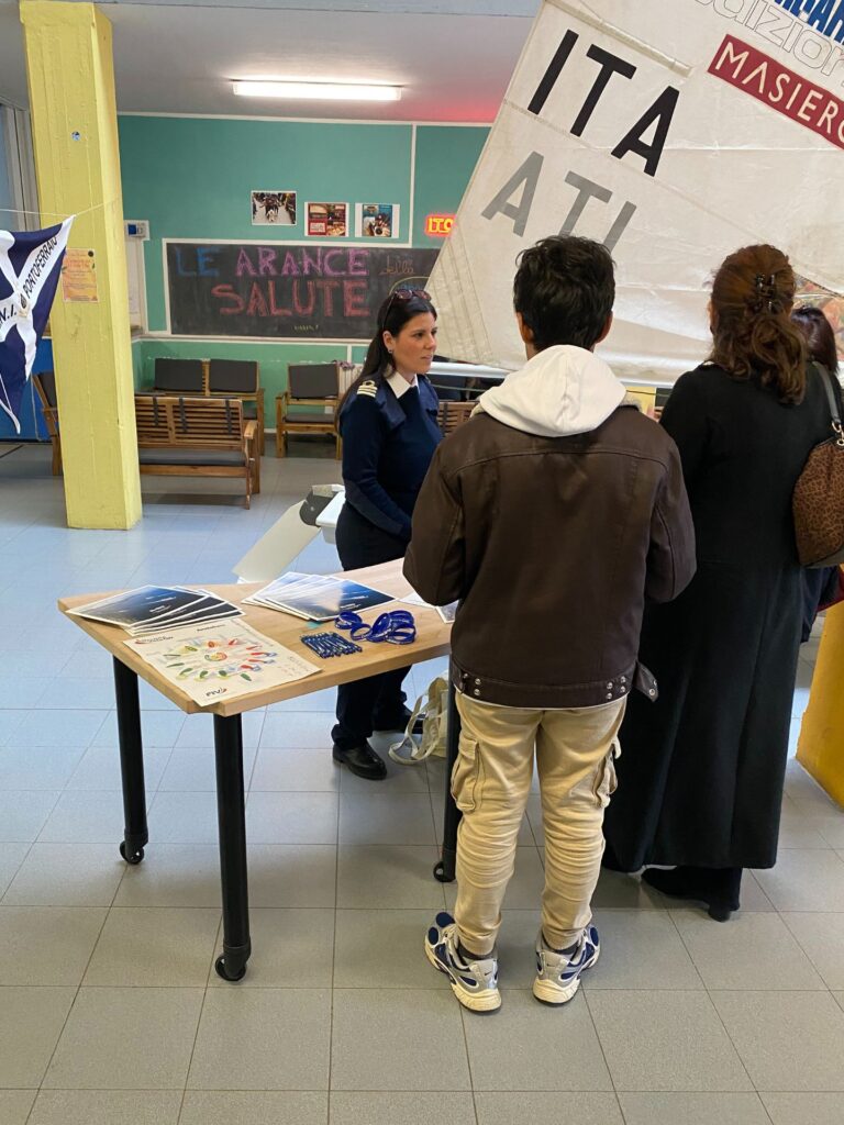Eine zweite Veranstaltung fand am ITCG Cerboni in Portoferraio anlässlich des Open Day statt. Hier verlagerte sich der Fokus vom „Wie funktioniert ein Schiff?“ hin zum „Wie baut man eine Karriere auf?“