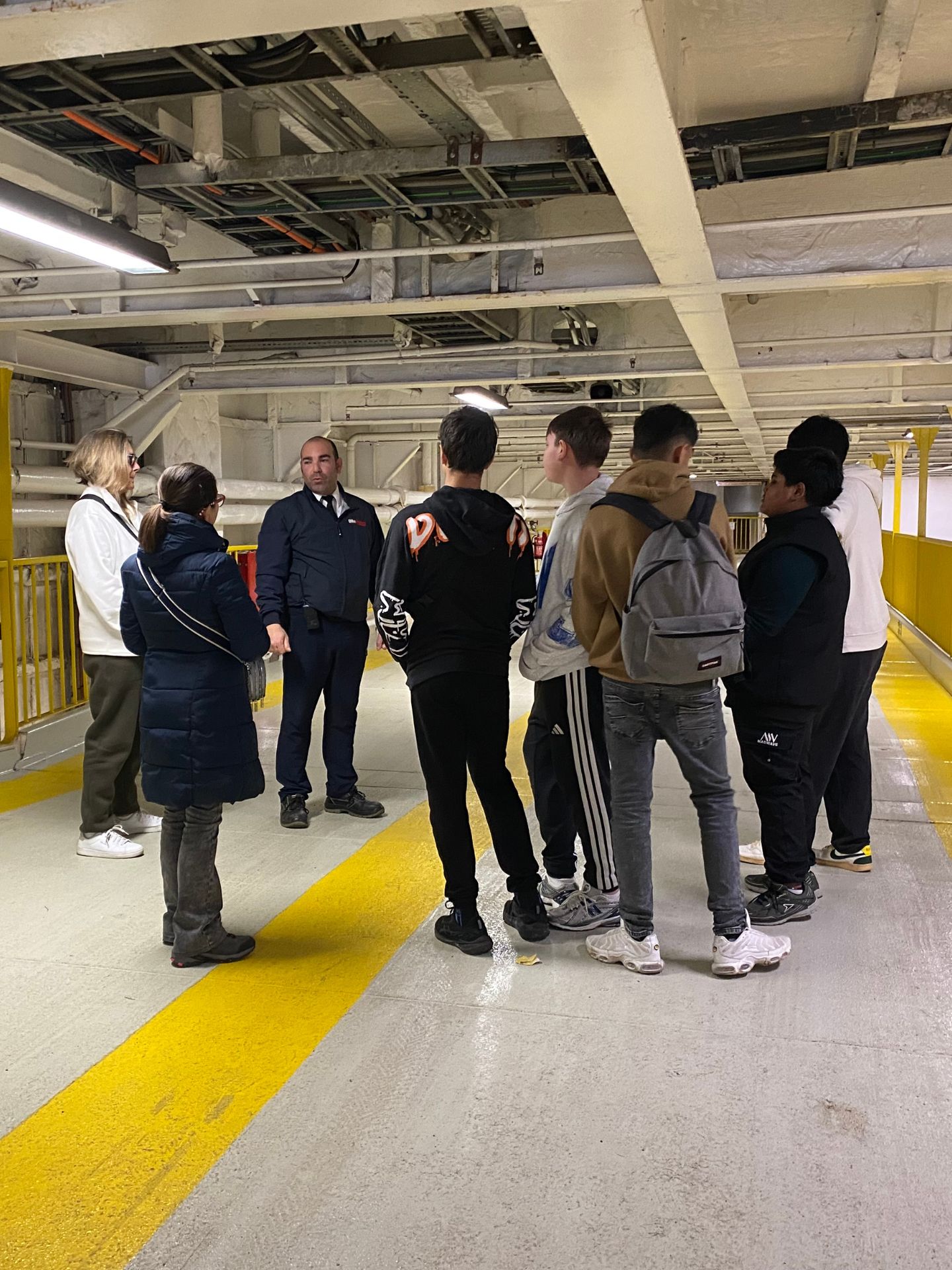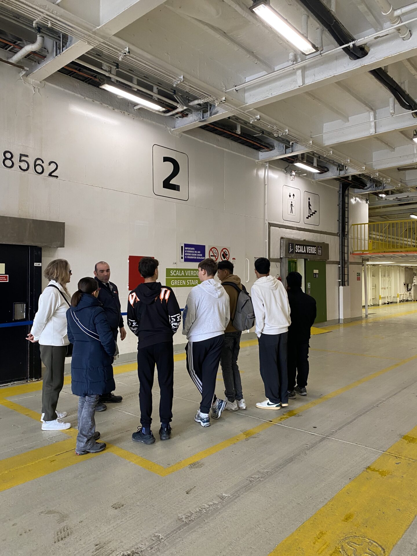 Captain Andrea Megna welcomed the students and explained how the ship works, its onboard equipment and, above all, the different professional roles that make every crossing possible. A direct and engaging way to show that behind every journey there are skills, education, responsibility and teamwork.