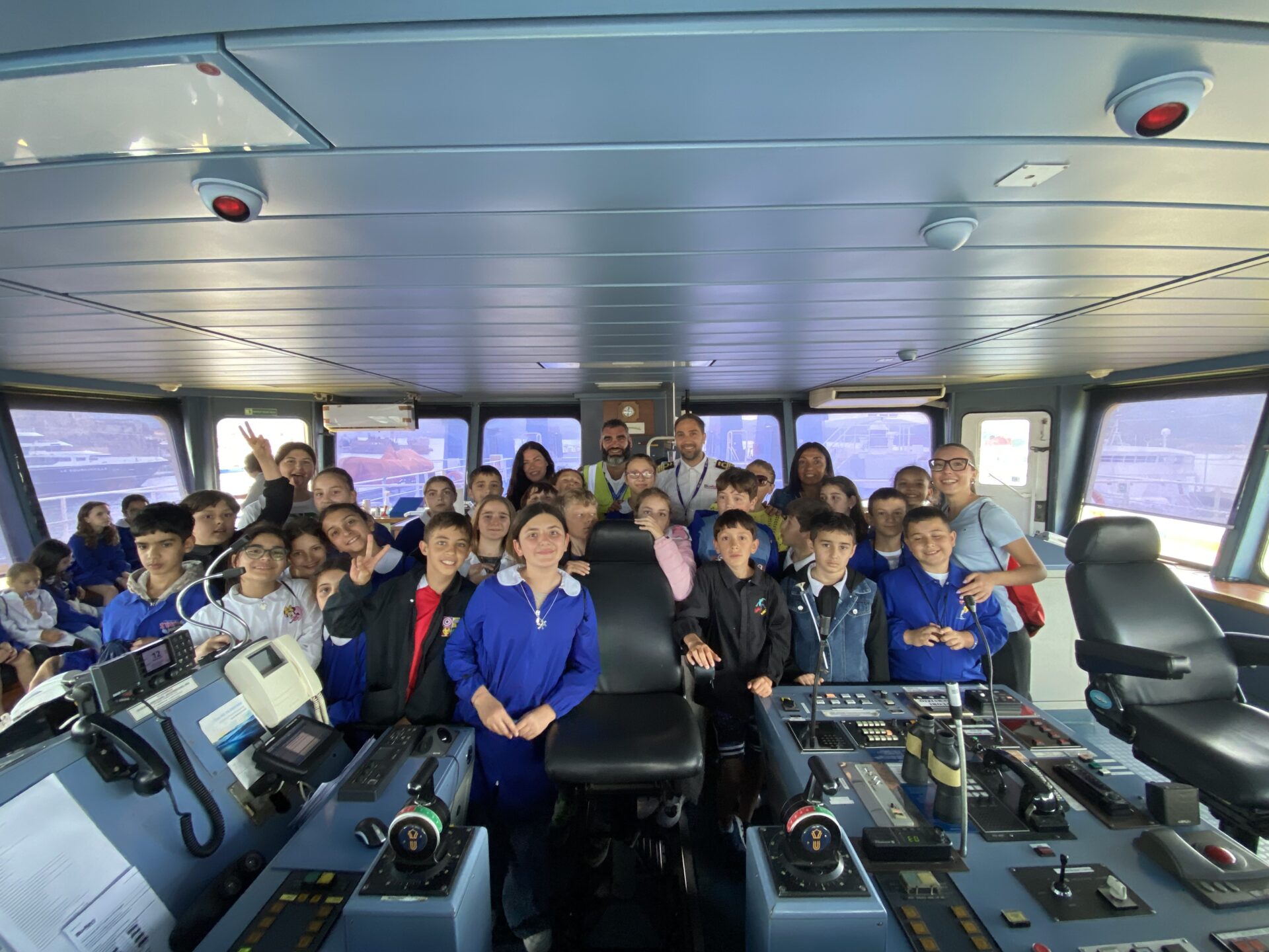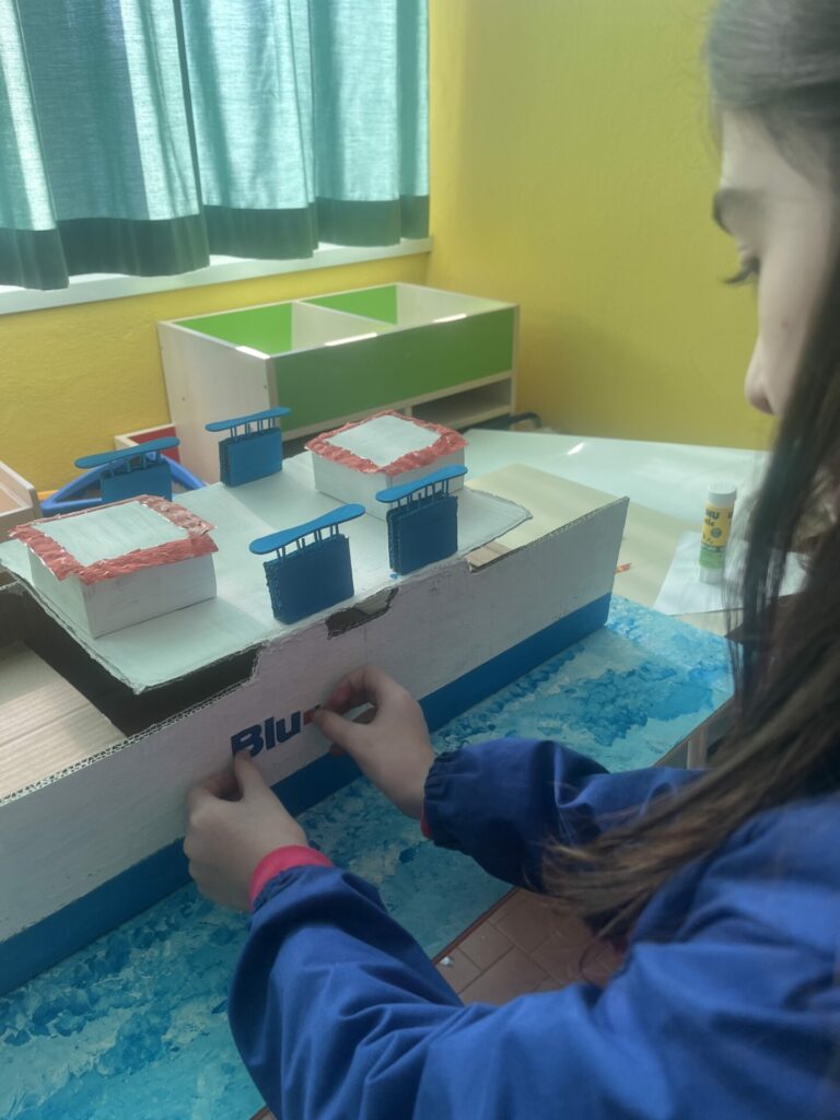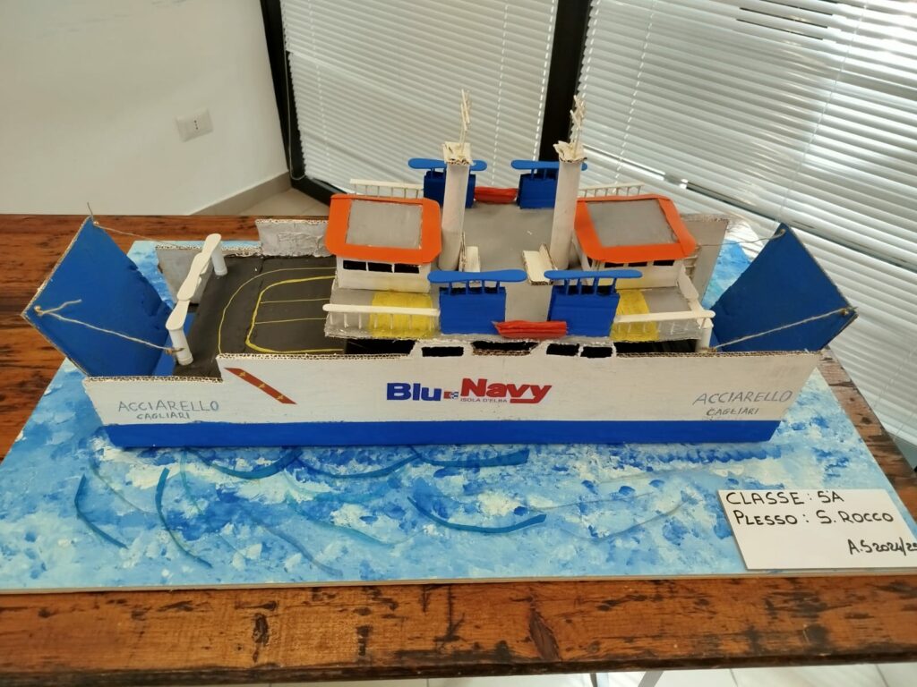 Le projet a impliqué les classes de CM2 des écoles primaires de l’île d’Elbe, invitées à créer, uniquement avec des matériaux recyclés, une maquette de notre ferry Acciarello.