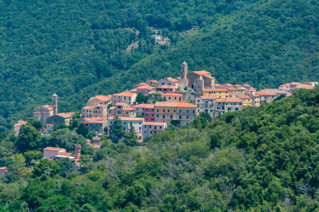 Une fois à Poggio, préparez-vous à explorer le village à pied. Parcourez les charmantes ruelles du centre historique, qui mènent à la place de la chapelle. Ces passages étroits offrent des vues pittoresques sur le village, avec des maisons en pierre et des balcons fleuris ajoutant une touche d’authenticité.