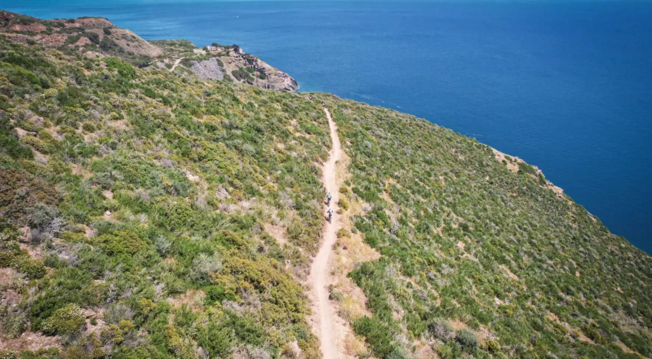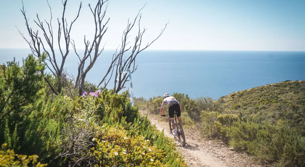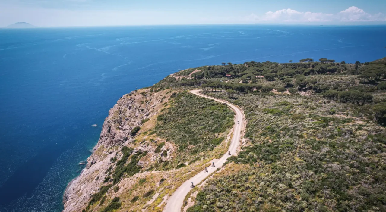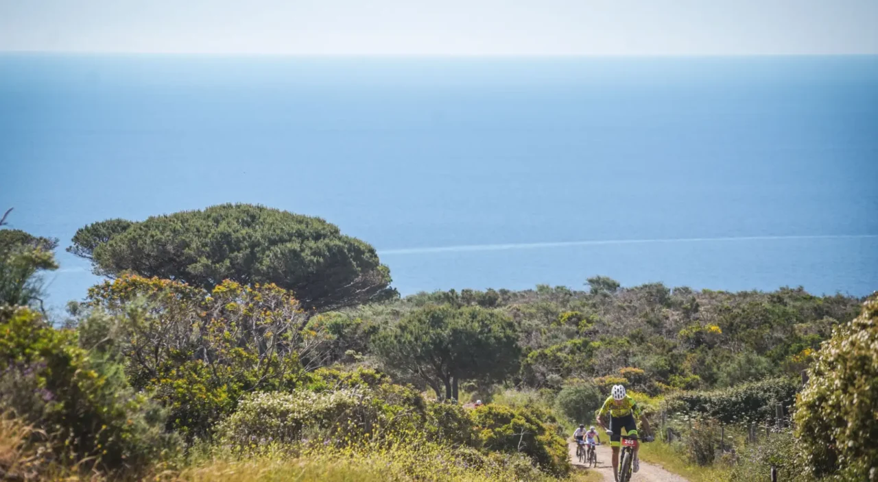 Il percorso Marathon è una prova vera: 72 chilometri e 2700 metri di dislivello in un ambiente unico per contrasti e intensità. Terra rossa, macchia mediterranea e il blu profondo del Tirreno accompagnano ogni pedalata, con tratti in cui sembra di tuffarsi nel mare.