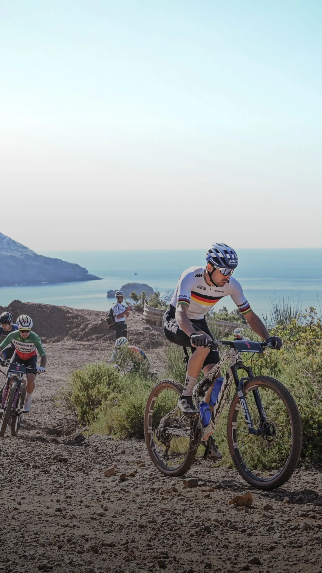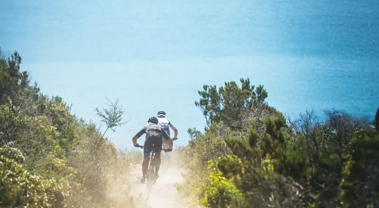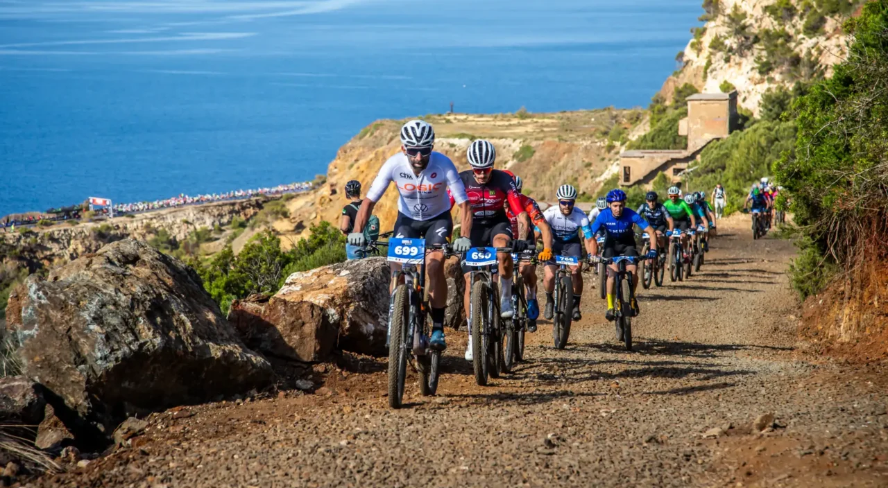 Il percorso Marathon è una prova vera: 72 chilometri e 2700 metri di dislivello in un ambiente unico per contrasti e intensità. Terra rossa, macchia mediterranea e il blu profondo del Tirreno accompagnano ogni pedalata, con tratti in cui sembra di tuffarsi nel mare.